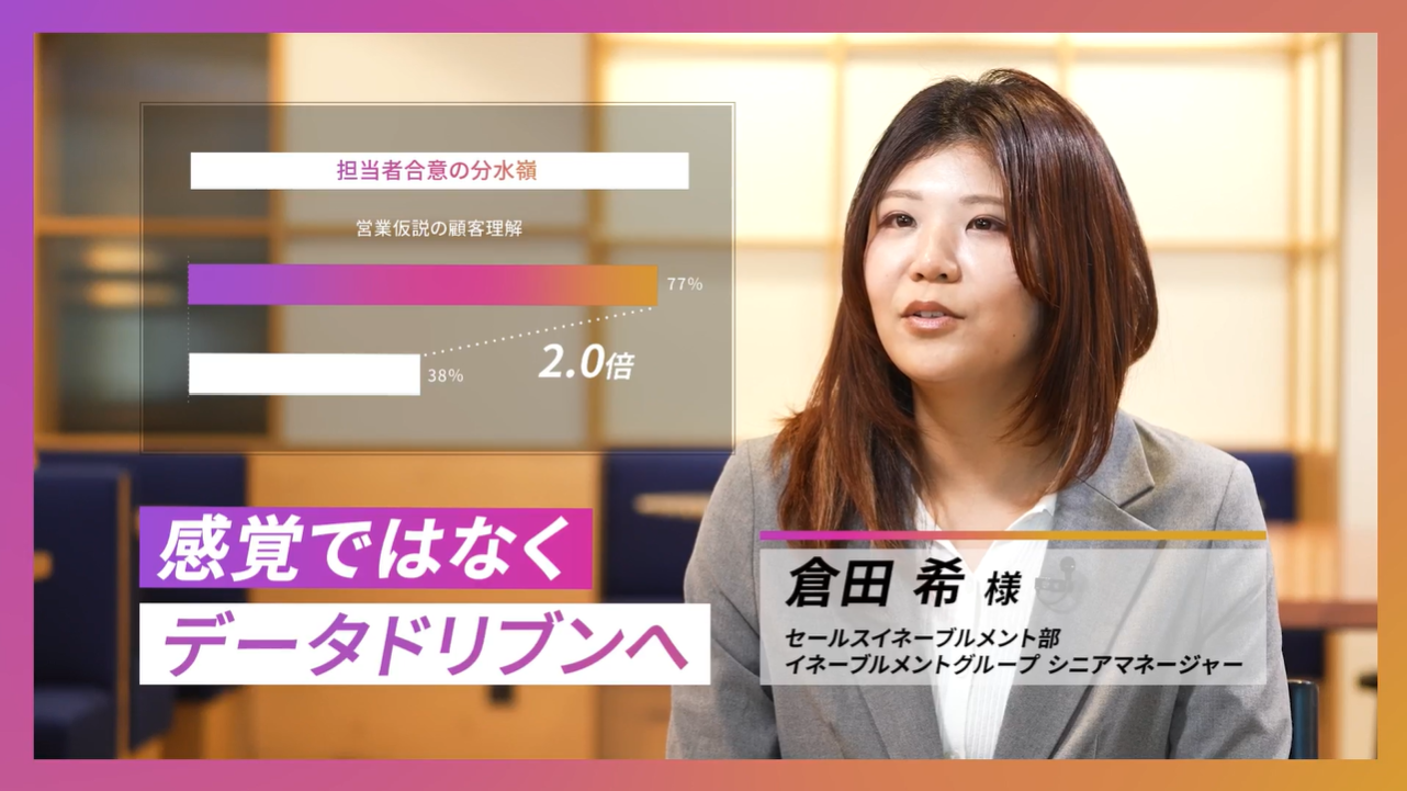 営業提案の質や商談の受注可能性をデータとして客観的に可視化し、現場のメンバーやマネージャーが具体的な指標に基づき改善に取り組める体制を構築しました。