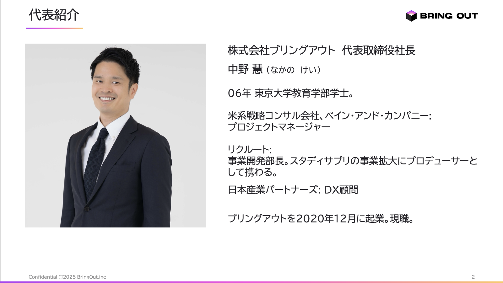 ブリングアウト株式会社 代表取締役 中野慧